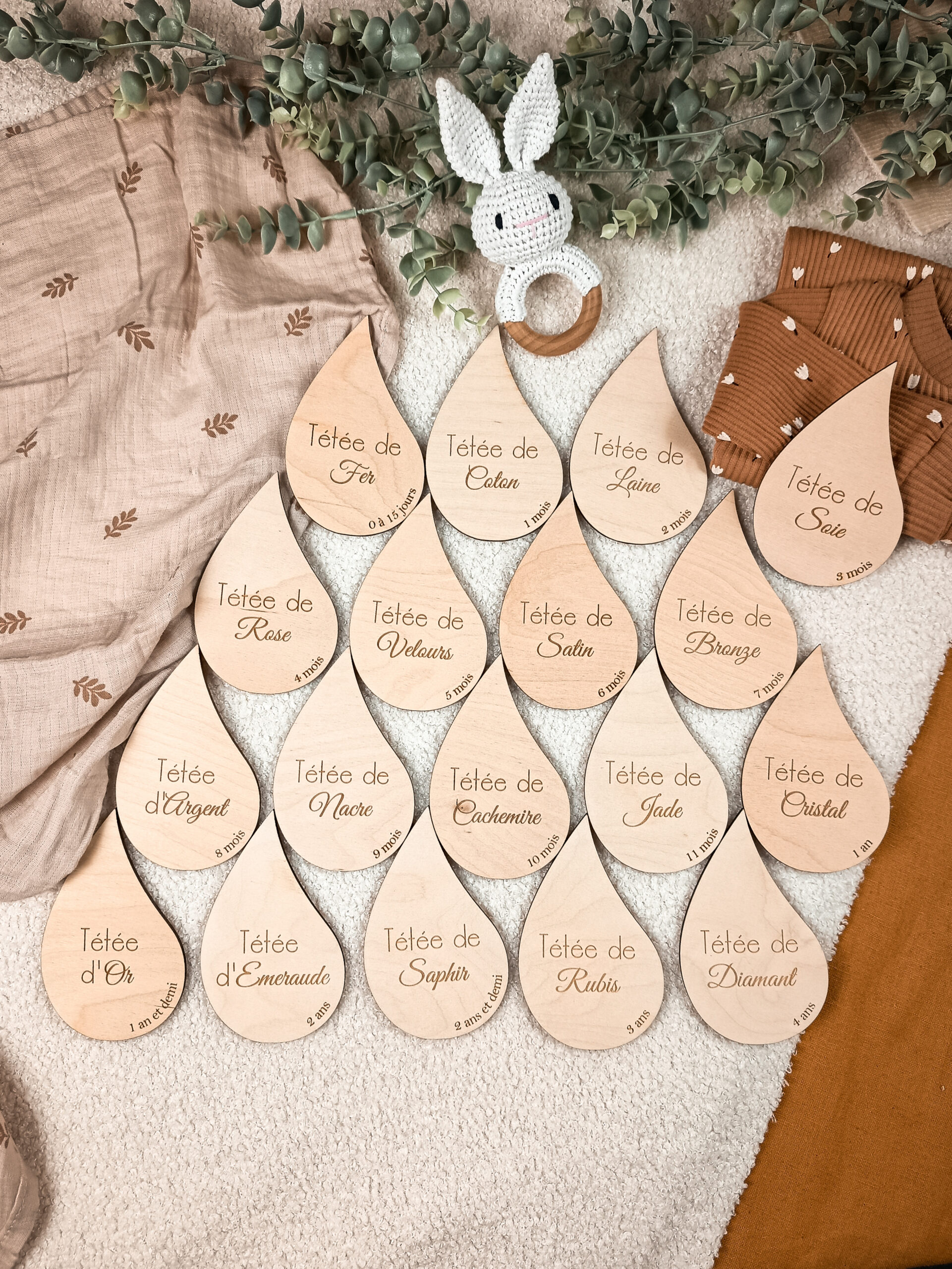 Immortalisez chaque étape de votre aventure d’allaitement avec ces cartes en bois gravées, pensées comme de véritables souvenirs à transmettre.