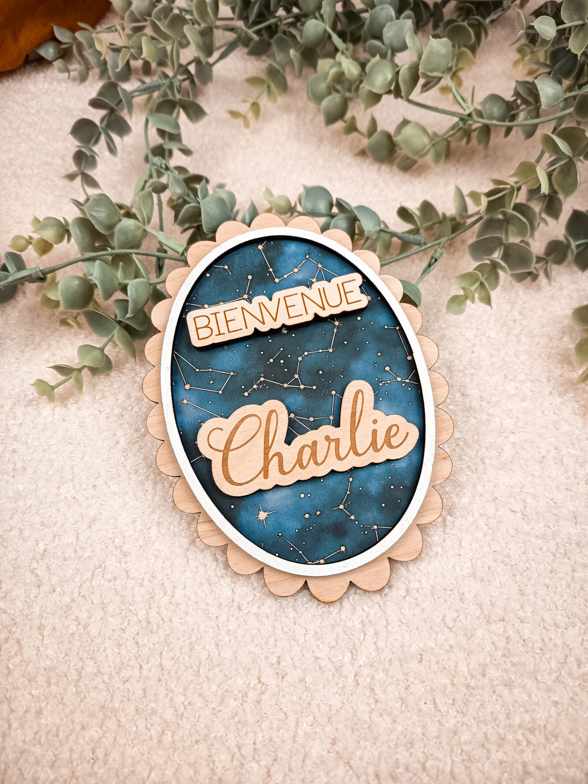 Immortalisez la première année de bébé avec une création douce et élégante, entièrement personnalisée à son prénom.