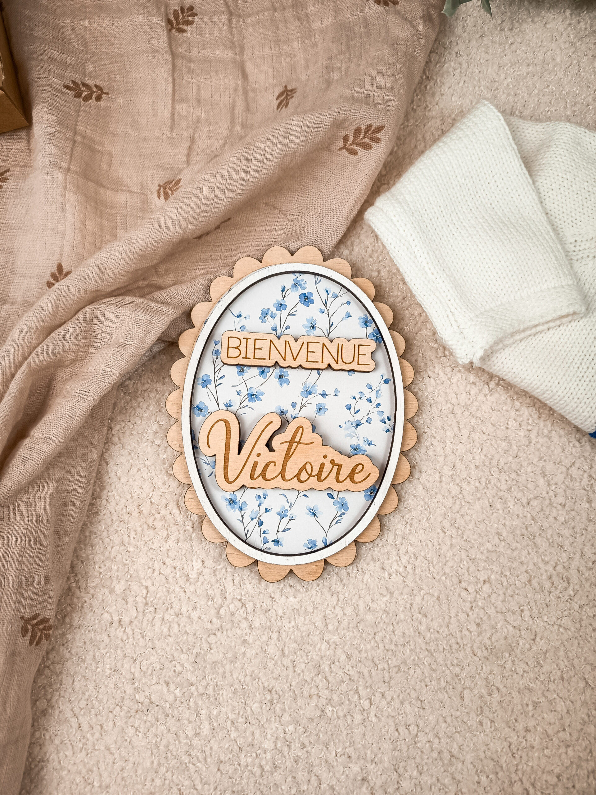 – Une carte personnalisée avec le prénom de bébé (en relief)